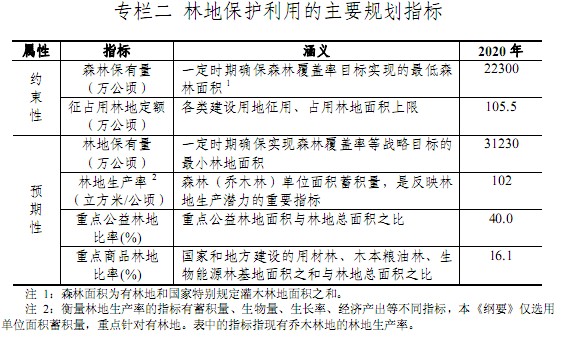 全國林地保護利用規劃綱要 (2010-2020年) 林地是國家重要的自然資源和戰略資源, 是森林賴以生存與發展的根基,在保障木材及林產品供給、維護國土生態安全中具有核心地位,在應對全球氣候變化中具有特殊地位。國務院明確要求“要把林地與耕地放在同等重要的位置,高度重視林地保護” 。為貫徹落實科學發展觀,統籌好林地資源的保護利用,不斷增加森林資源,根據《中華人民共和國森林法》、《中華人民共和國森林法實施條例》 、 《中共中央國務院關于加大統籌城鄉發展力度進一步夯實農業農村發展基礎的若干意見》(中發[2010]1號)和《全國土地利用總體規劃綱要(2006-2020年)》等法律法規和國家有關林地保護管理的方針、政策,制定《全國林地保護利用規劃綱要(2010-2020年)》以下簡稱《綱要》)。 本《綱要》主要闡明規劃期內國家林地保護利用戰略,明確全國林地保護利用的指導思想、目標任務和政策措施,引導全社會嚴格保護林地、節約集約利用林地、優化林地資源配置,提高林地保護利用效率,實現 2020 年森林覆蓋率奮斗目標,實現我國在聯合國氣候變化峰會上提出的爭取到 2020 年森林面積和蓄積分別比2005年增加4000萬公頃和13億立方米的目標!毒V要》是指導全國林地保護利用的綱領性文件。 本《綱要》的規劃范圍未包括香港特別行政區、澳門特別行政區和臺灣省。